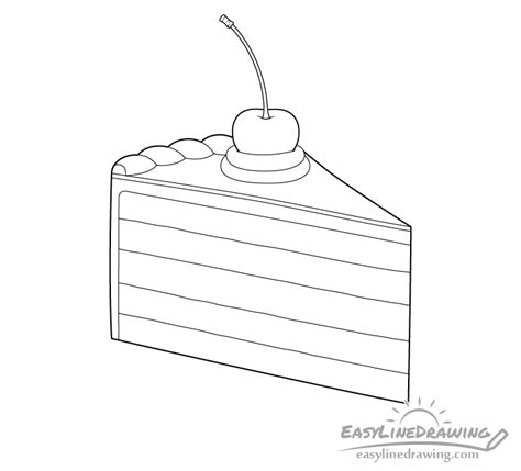 Download high quality line drawing cartoon slice of cake clip art. Use a ruler to draw a straight line for the edge of the slice. Web then put it on top of a big, long triangle with a slightly curved line on its shortest side.