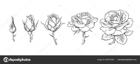 Closed Rose Bud Drawing. Web stages of rose blooming from closed bud to fully open flower. Floral, wedding, plant, tattoo vector. We collected 33+ closed rose drawing paintings in our online museum of. Hand drawn sketch style set.